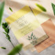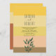 Botanisk, enkel, minimal, solupphöjande boho-gult och terracotta-bröllopsinbjudan i kombination med trendig färg med grönt, monogram bakåt och modernt kalligrafiskript.