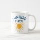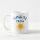 Sunrise flow brings retro yoga vibes to this sunny coffee mug. The blue and white worn vintage look text makes a simple, uplifting statement. This fun mug is a great way to add a touch of sunshine to your coffee time.