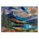 Bring peaceful nature into your kitchen with this beautiful stained glass style mountain lake sunrise cutting board. Featuring layered mountains, glowing sunrise rays, and a calm reflective lake, this design creates a serene and elegant atmosphere.