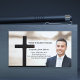 A timeless and reverent pastor business card featuring a black cross silhouette against a soft white sunrise background. This professional Christian business card design includes space for a pastor's photo, name, church title, and contact details, making it ideal for pastors, ministers, deacons, church leaders, and ministry staff. The clean white and black color palette paired with a sunrise symbol reflects hope, faith, and new beginnings—perfect for church outreach, counseling, and pastoral care. Fully customizable on Zazzle. Reach out for help with the customization of your photo; it needs to have a clear background.