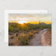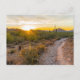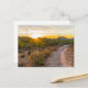 Bilden visar sol som stigning över bergen och lyser öknen och spåret.