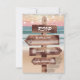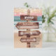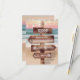 Svarskort från Romantiska oceanen bröllop med ett lush sunset, sandstrand, ljus med snörvning och din osa text skriven på en rustik träskylt.