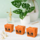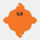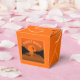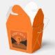 Tröghetskonst för orange och svartvit tropisk strand. Silhouettes av svarta berg, handflatan träd och liten båt som reflekteras i havet ställs mot en ljusstark orange solnedgång med valfri text.