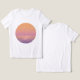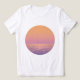 This elegant t-shirt features a minimalist hand-drawn illustration of the sun setting into the ocean. The simple circular sun touches calm water waves with a smooth gradient sky in orange, pink, and purple tones. Perfect for women who love summer vibes, beach sunsets, and stylish, modern designs. High-resolution, print-ready, and versatile for casual wear.