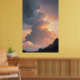 En digital målning skildrar en brinnande solnedgång i himmel, som domineras av en stor, fluffy molnbildning. Molnen är en blandning av grått av mörk och mjuka, peachyfärgade orangar som lyfts upp av sol. Ljuset kastar en varm glöd på molnen och skapar en dramatisk kontrast mot det mörkare himmel. Horisonten är knappt synlig, med en antydan om avlägset träd och ett markflöde i förgrunden.