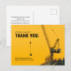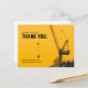 Ett tackkort med minimal tema för byggteam med en enkel svart och gul monokrom design. Den har en siluett av en byggkran i förgrunden med ett enkelt tack åt sidan. På insidan finns ett ytterligare utrymme för ditt eget specifika tackmeddelande till ditt bygg- och ingenjörsteam eller kunder.