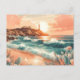 Sunset Lighthouse Ocean Beach Boho Blommigt Vykort