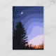 Det här artisthandelskortet målar en bild av en fredlig planet. Det är skymning och allt är tyst. Ljuset himlar är en palett med indigo, blått, rosa, gult och rött. Gräs träd tystas ned mot solnedgången färg. En liten slapp av måne som är på väg upp i himlar tittar ner på scenen.