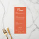 Den här Blommigten för solnedgång Formal Orange Elegant bröllop-meny visar ömtåliga blommor med en bakgrund för solnedgången orange, med modern typografi och skriptkalligrafi. Det är helt anpassade med parets namn, bröllop-datum, menyalternativ för varje kurs och utrymme för annan information på baksidan. Den formella utformningen och ordalydelsen kommer att tillföra ert firande i bröllop en viss elegans. Det här objektet koordinerar med Eleganten för solnedgång i Orangen Blommigt Bröllop Suite.