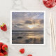 En fotografisk utformning av en mjuk drömmarsolnedgång över havet som reflekteras i vatten på stranden. Wales.