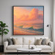 Artwork of a cloud over the sea during "golden hour". A radiant seascape where glowing clouds rise above tranquil waves bathed in a warm sunny glow. The surf meets the shoreline as the sun’s last light spills across the sky in soft tones of coral, peach, and lavender. It captures the breathtaking, fleeting moment when the sun dips below the horizon, bathing the sky and sea in an unforgettable golden light. This piece is ideal for creating a warm atmosphere in a living room, above a fireplace, or in a sunroom. It pairs beautifully with natural wood, linen, and other coastal decor. If you cherish the last moments of daylight and the calming sound of the surf, this iconic sunset scene will be a cherished focal point in your home. This art can be customized, printed, and or downloaded.