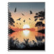A stunning sunset scene over a peaceful lake, with flying birds and silhouetted trees creating a calm and reflective mood. Perfect for home décor and nature lovers alike