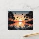 A stunning sunset scene over a peaceful lake, with flying birds and silhouetted trees creating a calm and reflective mood. Perfect for home décor and nature lovers alike