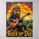 Den här infångande målningen har en lejon, komplett med solglasögon och läder jacka, djupt nedsänkt i en "solnedgång" på en elektrisk gitarr. Han är balanserad på ett sten och bortser från en pulserande dal av grönt backe och träd, allt under en bedövande, texturerad solnedgång himmel. Det vibrerande, impasto-borrarbetet skapar en livlig och upplivande atmosfär, som perfekt förmedlar "Sten eller Die"-viberna för denna unika konsert utomhus.
