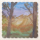 När sol ligger bakom träd översvämmas skogen av gyllene ljus. Färg tonar ut från himlar och mörka skuggor samlas i träd. Det här är en fantastisk originalvattenfärg på solnedgången träd som kommer att lägga till mjuk färg i vilket rum som helst i ditt hus.