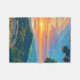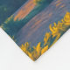 En bild av solnedgången från berget Jerai (Gunung Jerai) i Kedah, Malaysia, som visar den vidsträckta utbyggnaden av de omgivande slätterna, troliga paddykanta fält och det avlägsna havet med en ö. Förgrundsförhållandena spolar gröntens löv och inslag, vilket leder fram till bergens skogssluttningar.