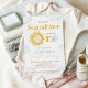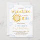 Celebrate your little one with this "Our Little Sunshine" 1st birthday invitation. Featuring a retro watercolor sun and soft blue clouds. Perfect for a gender-neutral summer or boho-themed party.