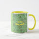 Denna viskfulla och förtjusande tvåtonade grönt och gult mugg har text i två ställe som kan vara personlig. Det skulle göra en julklapp i perfekt till en ung tonåring flicka.