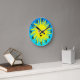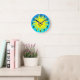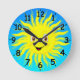 En bild av Sol i blå himmel. En ljuv dag! Tecknade figurer. Den här versionen av väggklockan har ett uppringningsnummer.
