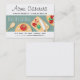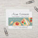 Visitkort för en caterer som specialiserar i sunda matar och sunt äta. Anpassadetext på bästa och nedersta. Baner över kort i blått, benvitt, rött och grönt med grönsaker på skärbrädan som klipps. "Sunt äta",