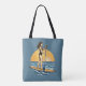 This bay blue SUP inspired graphic tote is perfect for hauling your daily essentials and doubles as a fantastic beach bag too. Featuring a woman paddling at sunset beneath the glowing orange sky, the ocean ripples from the salt air, as the wind gently blows her salty hair. Show off your love for paddleboarding and the coastal life with this fun bag.