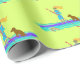 Paddleboarding presentpapper med tjej på en bräda med hennes hund design. Mönstret är tryckt över tropisk chartreuse-färg. Slå in presenter till tonårsdotter eller vän. Detta roliga och sportiga papper finns i olika längder.