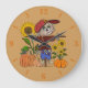Super Cute Scarecrow Large Round Wall Art Clock Stor Klocka