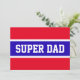 Denna ljusa roliga sportiga design har en atletisk SUPER PAPPAS-text inuti en ljusblå horisontell mittrand som är konturerad med vita pinstripes som gränsar till röda ränder ovan och nedan. Texten kan anpassas.