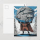 Denna seriebaserade illustrationspostkort presenterar en superhjälte i röda kläder som bär en stor sten. Detta kort gör en fantastisk present till pappor under Fars dag.