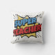 A vibrant, superhero-inspired vector design featuring a teacher in a heroic pose, complete with a cape and mask, accompanied by bold, "Super Teacher" typography in an action-packed comic book style.