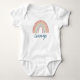 Denna fantastiska anpassningsbara designer-babybodysuit med en super söt akvarell-boho regnbåge i bruna och blå toner gör en perfekt present för baby shower eller nyfödd bebis, Klicka på Anpassa-knappen för att lägga till din egen text och skapa din egen unika design! .© Julie McIver