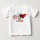 This personalized first birthday t-shirt features the number one (1) wearing a flowing red superhero cape, accented with lightning and starburst effects.