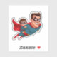 Detta dekal skildrar en dynamisk scen av en superhjälte pappa som sjöng genom himlar med sin lika kapade superhjälte son, som symboliserar det äventyr som delas och det obrutna bandet mellan far och son.