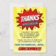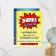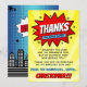 Säg tack med stil med dessa trendiga superhjälte födelsedags-kort med serietidningsstil. Malltexterna är lätta att anpassa och din familj och vänner kommer att bli glada när de får dessa fantastiska tack-kort.