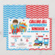 Superhjälte & Tåg Gemensam Födelsedagsinbjudan – Samla alla superhjältar, alla ombord på Födelsedagsexpressen!