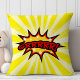 Grrr! Vintage Tecknad Bok Stil superhjälten Dekorativ kudde. Trendigets söta tecknad bok-kudde med ljusstrålar och halvtonspunkter. Underbar biet av popkonsdekör för ditt barnsuperhjälte sovrum! Anpassa den här kudden med din egen bakgrund färg genom att klicka på knappen "anpassa den".