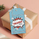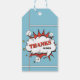 Superhjälte Tecknad Tal Bubble Birthday Tack Presentetikett