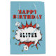 Superhjälten Tecknad Tal Bubble Boy Grattis på födelsedagen Gift Bag. Lägg till ditt namn. Roligt personlig toppen hjälte födelsedagsäck för pojkar.