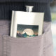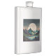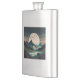 Ett abstrakt av en massiv supermåne i ett bergsområde sjö med en flock av fåglar i fet struktur och mörk med bruna, beige, tan, blått, cyan och svart toner.