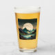 Ett abstrakt av en massiv supermåne i ett bergsområde sjö med en flock av fåglar i fet struktur och mörk med bruna, beige, tan, blått, cyan och svart toner.