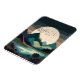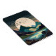 Ett abstrakt av en massiv supermåne i ett bergsområde sjö med en flock av fåglar i fet struktur och mörk med bruna, beige, tan, blått, cyan och svart toner.