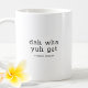 I den kaymaniska kulturen, när någons handlingar kommer ifatt dem, finns det bara en sak att säga: "Dah vad du får." Översättning? Det är vad du förtjänar. Superskojet Caymanian Dialect Coffee Mugg fångar den perfekten av Ön-stil karma med en flin och en sipp. Perfekt för morgonbröder, kontorsbanter eller påminnelse om dina besättningar - Caymanvägen.