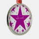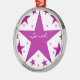 Superstar-samling Premium Round Ornament inom lila med en kaskad av roligt stjärnor. Den här söta och gigantiska stjärndesignen skulle ge en underbar gåva till vilken dotter, dotter eller annan ung kvinna som helst i ditt liv. Denna roligt stjärna skulle göra ett underbart keepéprydnadsämne genom att lägga till namn och/eller personlig hälsning.