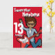 Kortet läste Superstar Nephew 13 idag. Inuti: Grattis på födelsedagen kan du anpassa dig med ditt eget ord. Roligt Red mörk hair boyboy som spelar upp sitt elektriska gitarkort med originalkonst och designad av Sarah Trett för www.mylittleeden.com