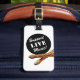 Underbart tillbehör för musiker och musik älskare - bagagetaggen "Support Live Music" med trummsticks grafik. Perfekt för gigpåsar och fodral! Se till att checka ut min Zazzle-butik för mer musikmerch och musikpresentidéer och följ oss på Facebook och Instagram @drumjunkiegraphics. Besök www.drumjunkiegraphics.com för mer information om trumman!