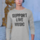 Den här coolan har ord Support Live Music och är underbar för alla Live Band- eller Live-konserter Älskare.
