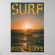 Surf Sunset Art Print Vintage Ocean Wave Poster