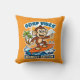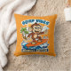 Surf vibes - monkey edition. Kussen met een zomerse surf illustratie in cartoon stijl van een vrolijke aap op een surfplank. Voor iedereen die van surfen, zon, zee, strand en vakantie houd.