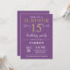 Överraskning 15:e födelsedagsinbjudan med Lila och Guld Glitter. Barns födelsedag. Pojken eller Flickan Dam Tonåring Teenage Bday Inbjudan.