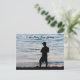 Silhouette från en surfa som fiskade i skymningen i Cape May, New jersey. Plats i svart text överst.